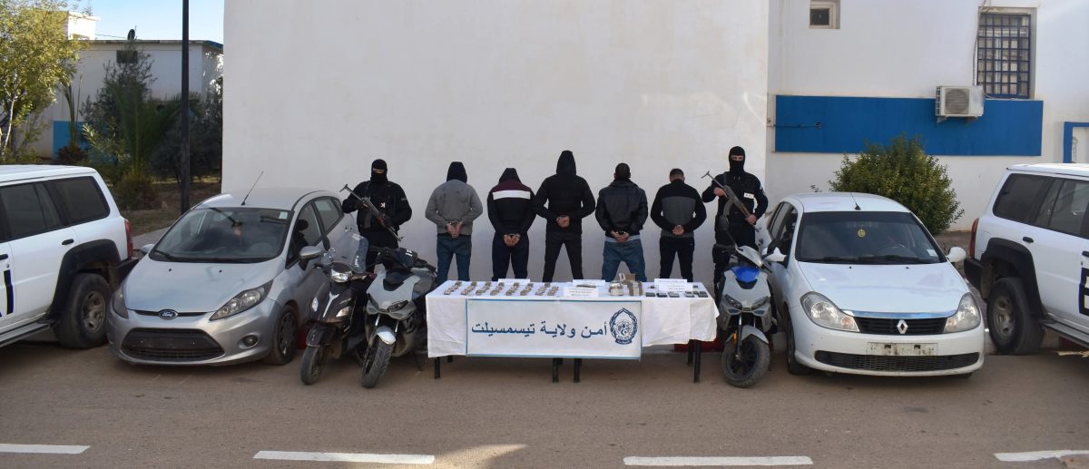 تمكنت فرقة البحث والتدخل بولاية تيسمسيلت من الإطاحة بشبكة إجرامية خطيرة تنشط في استيراد وترويج المخدرات، وذلك بعد عملية أمنية محكمة أسفرت عن توقيف خمسة أشخاص وحجز أزيد من 3 كلغ من الكيف المعالج، إضافة إلى مركبات ومبالغ مالية معتبرة يُشتبه أنها من عائدات النشاط الإجرامي.