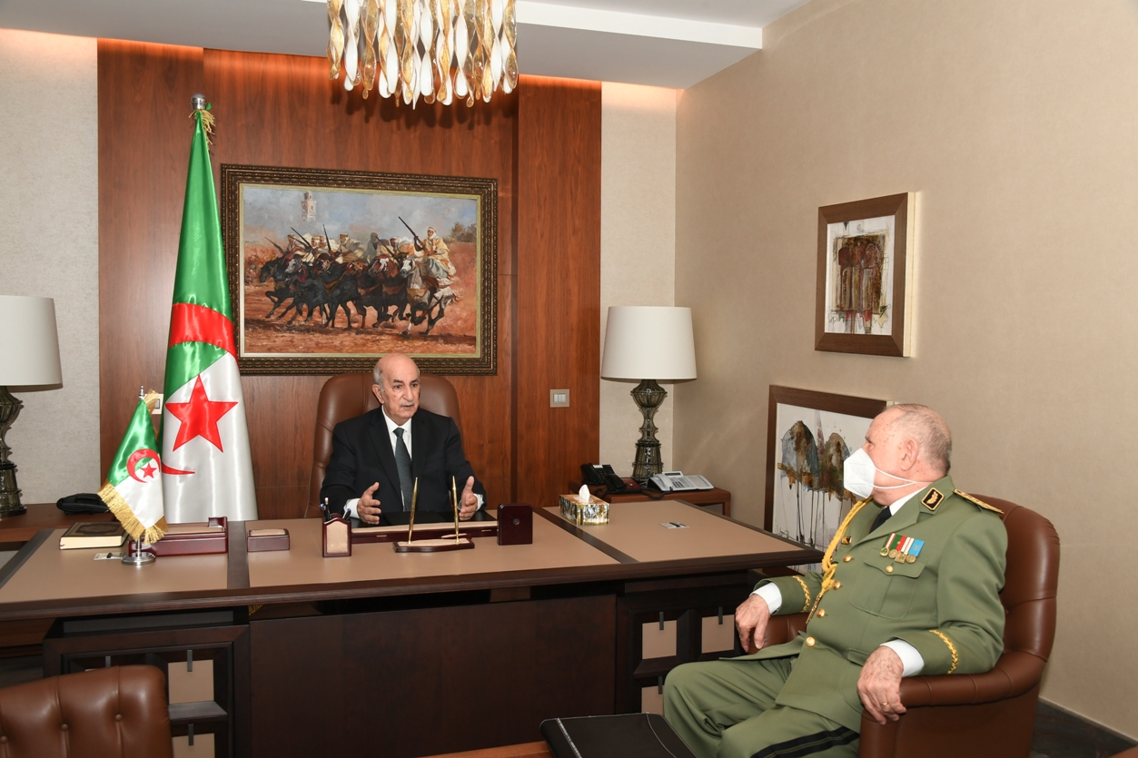 رئيس الجمهورية عبد المجيد تبون يعقد جلسة عمل مع رئيس أركان الجيش الوطني الشعبي الفريق السعيد شنقريحة