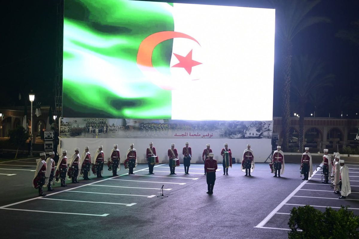واستُهلت المراسم بعزف النشيد الوطني من أداء الفرقة الموسيقية للحرس الجمهوري، تلتها مقطوعات من الأناشيد الثورية الخالدة، قبل أن يتابع الحضور فيلماً وثائقياً بعنوان “ثورة نوفمبر ملحمة المجد ونهج الانتصار”، من إنتاج مديرية الإعلام والاتصال لأركان الجيش الوطني الشعبي، استعرض أبرز محطات الكفاح الوطني وتضحيات المجاهدين.