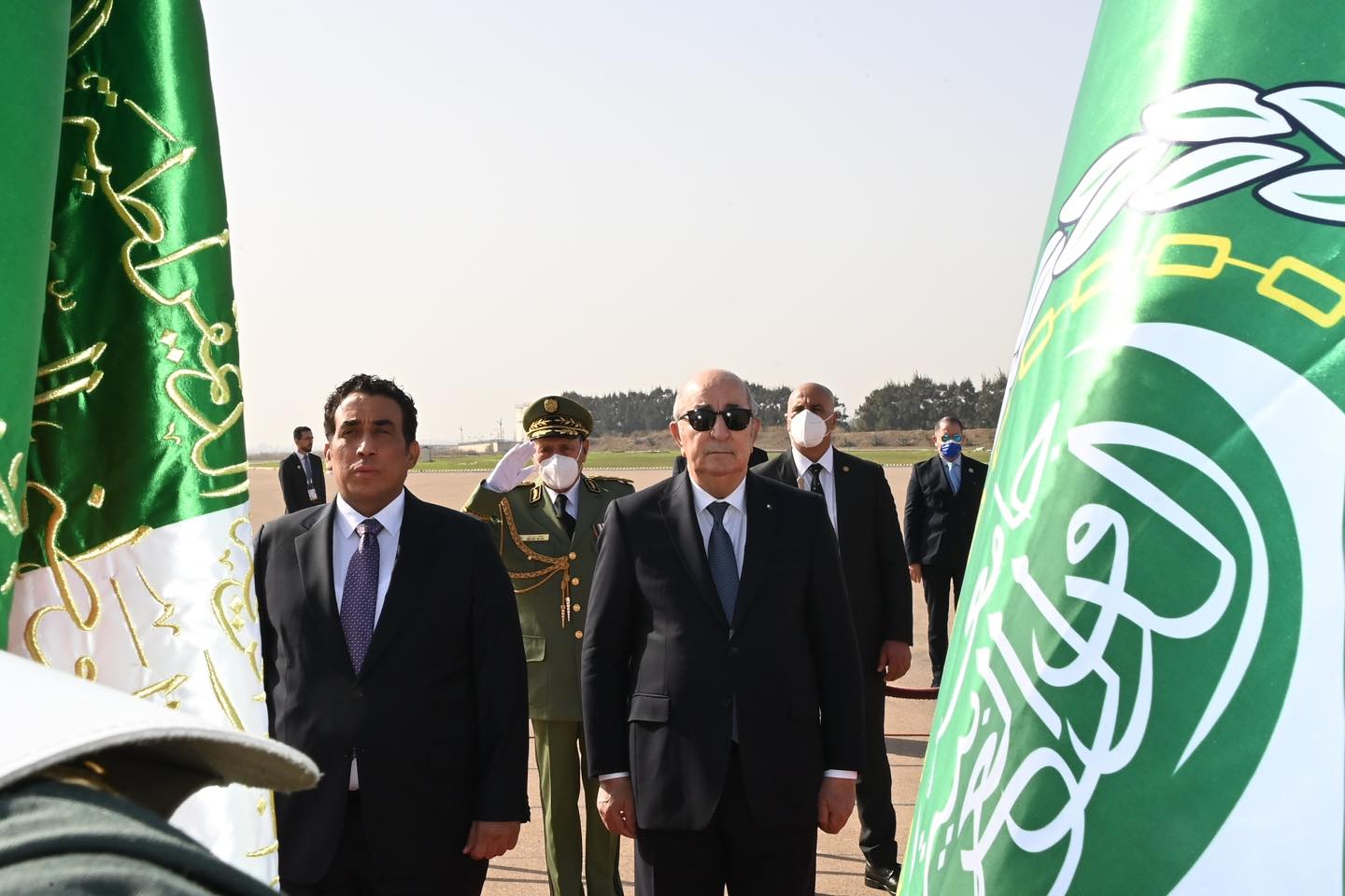 وكان رئيس الجمهورية عبد المجيد تبون في استقبال رئيس المجلس الرئاسي الليبي محمد يونس المنفي، رفقة الوفد المرافق له.