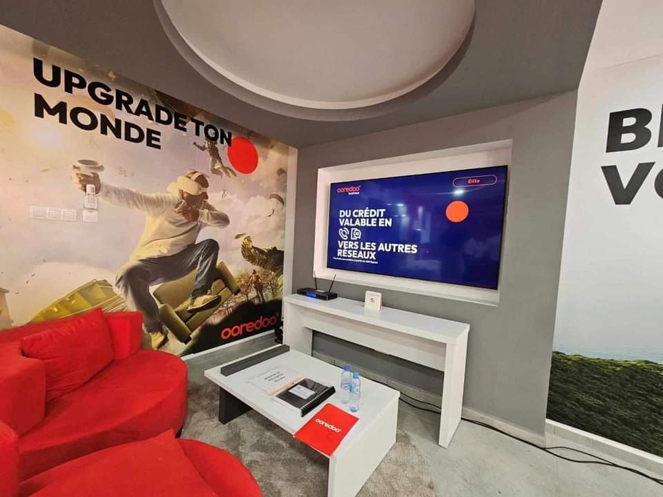 مُصمم عل شكل قاعة جلوس منزلية، أين يمكن للزبون أن يستمتع بأنترنت Ooredoo من خلال SAHLA BOX وتجربة تطبيقات Ooredoo كالمنصات الحصرية للأفلام ANAFLIX والموسيقى ANAZIK.
