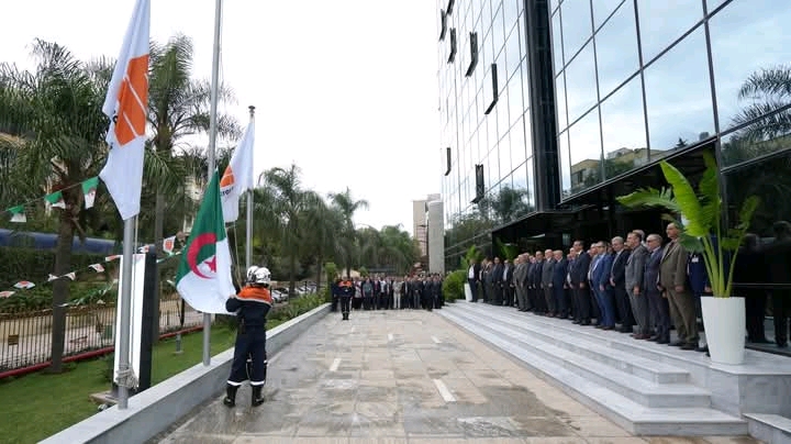 أشرف نور الدين داودي، الرئيس المدير العام لمجمع سوناطراك، على مراسم رفع العلم الوطني بباحة المديرية العامة للشركة، تخليدًا للذكرى الحادية والسبعين لاندلاع الثورة التحريرية المجيدة.