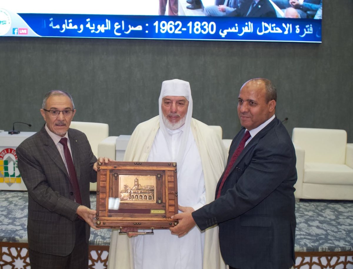 وفي ختام الجلسة، كرّمت جامعة محمد خيضر ببسكرة العميد تقديرًا لإسهامه الفكري في إنجاح الملتقى، وتثمينًا لجهوده في صون اللغة العربية والدفاع عن مرجعية الجزائر الدينية والعلمية.