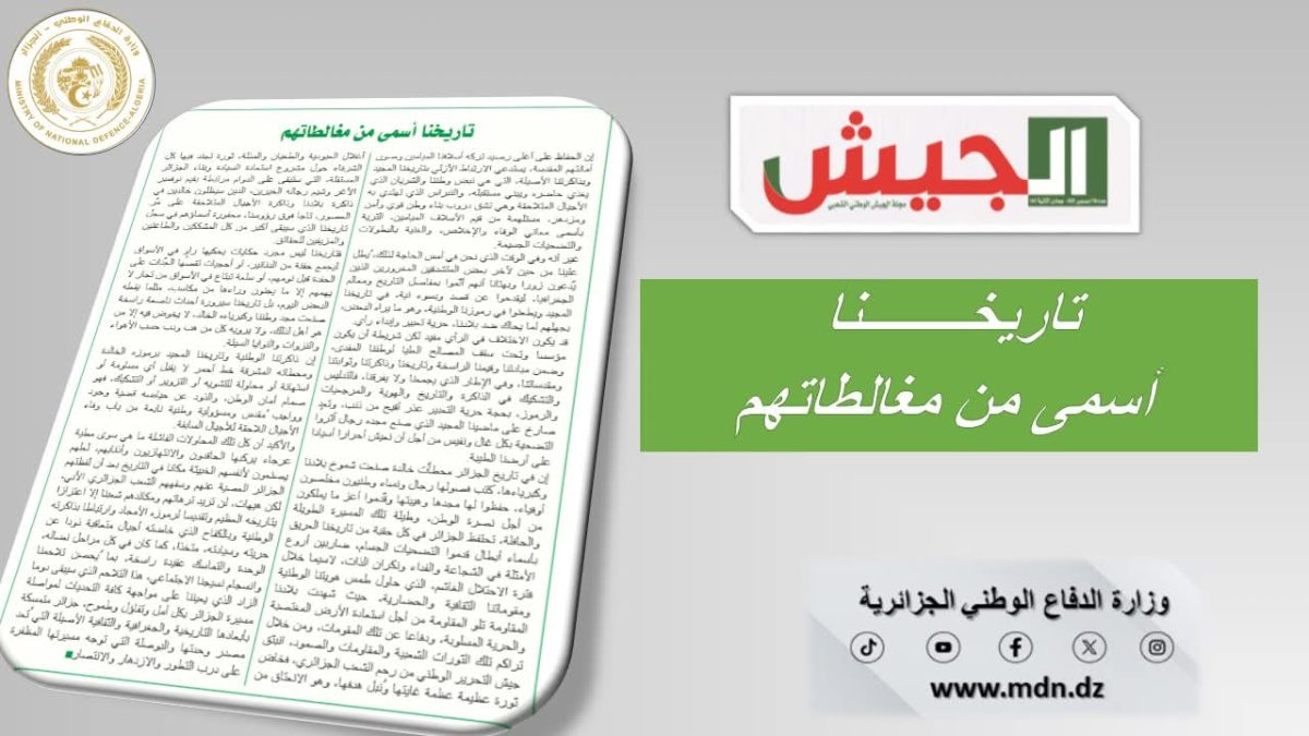 وختمت المجلة بالقول: “إن كل تلك المحاولات الفاشلة ليست سوى مطية عرجاء يركبها الحاقدون والانتهازيون وأذنابهم، لعلهم يصنعون لأنفسهم مكانا في التاريخ بعدما لفظتهم الجزائر وسفّههم الشعب الجزائري الأبي. لكن هيهات… فلن تزيد ترهاتهم ومكائدهم شعبنا إلا اعتزازا بتاريخه العظيم وتقديسا لرموزه وارتباطا بذاكرته الوطنية وبالكفاح الذي خاضته أجيال متعاقبة دفاعا عن الحرية والسيادة”.