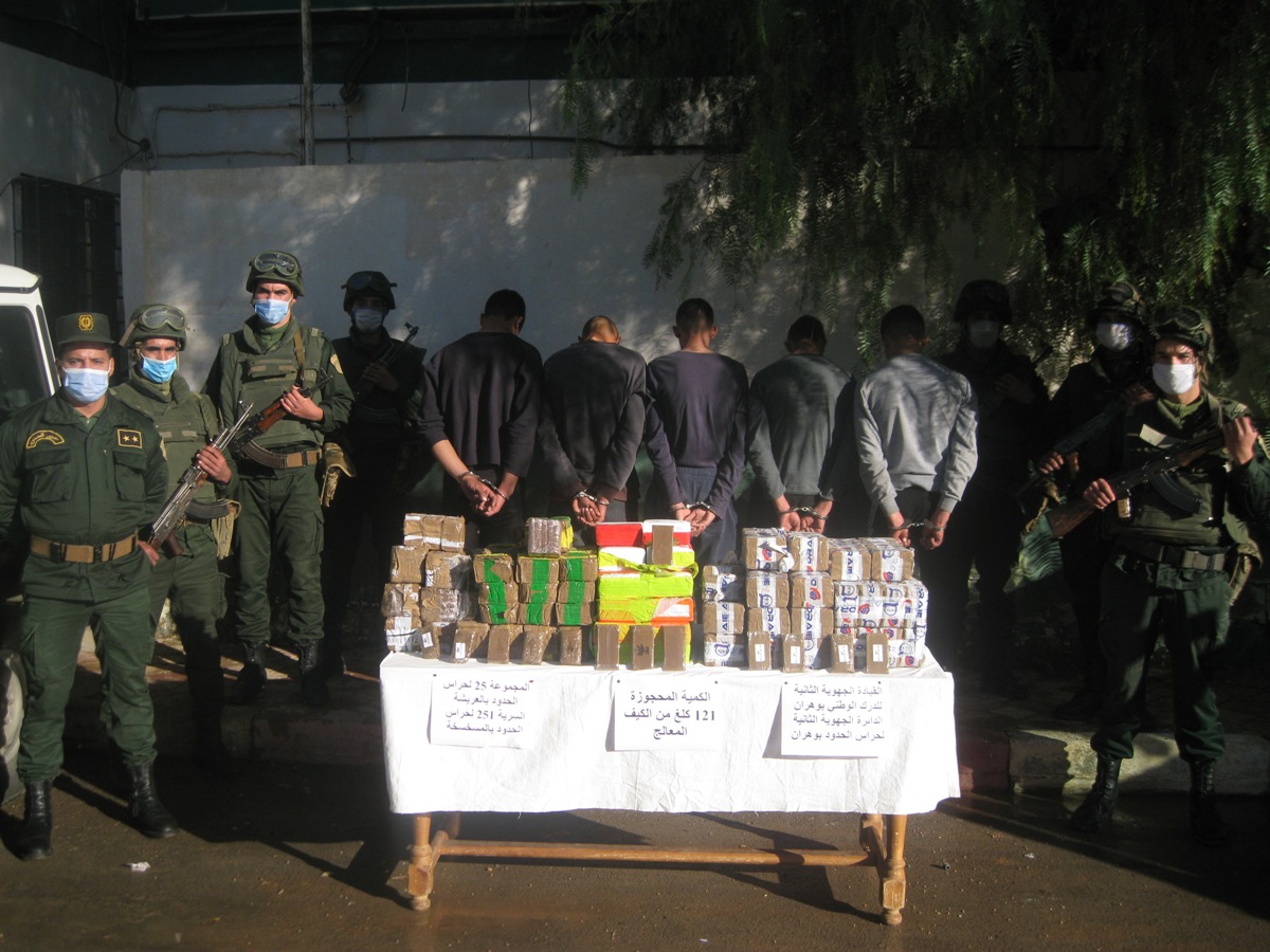 وتم خلال عمليات متفرقة حجز كميات ضخمة من الكيف المعالج تُقدر بـ 24 قنطار و58.632 كيلوغرام تم إدخالها عبر الحدود مع المغرب، حسب بيان لوزارة الدفاع الوطني.