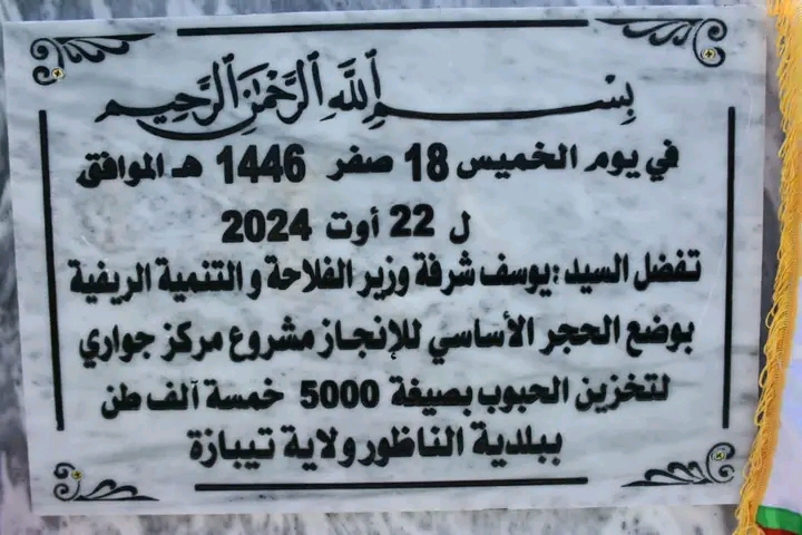 وزير الفلاحة يضع بتيبازة حجر أساس إنجاز مركز جواري لتخزين الحبوب